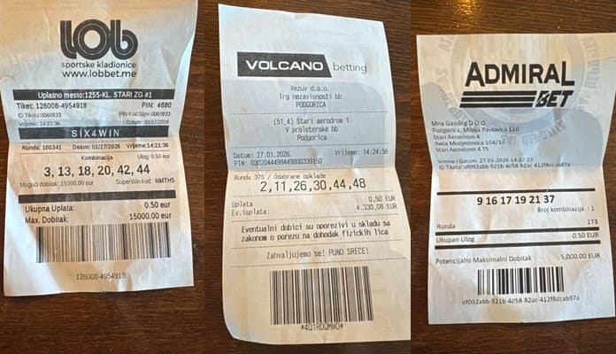 Fotografije tiketa tri priređivača koji se u javnosti predstavljaju kao primjer zakonitog poslovanja pokazuju da porez na dobitke nije obračunat niti jasno iskazan, uprkos tvrdnjama da upravo oni poštuju poreske propise.