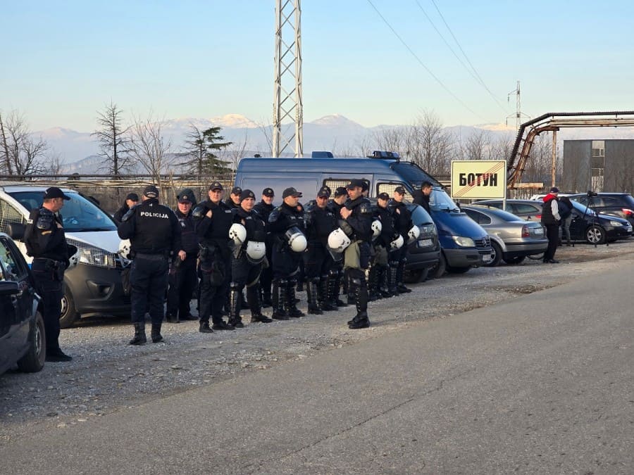 Sa unutrašnje strane gradilišta stoji obezbjeđenje, a skup obezbjeđuje policija. Mještani su iz centra Botuna krenulu u 14:30 sati, a do gradilišta su došli u koloni automobila sa upaljenim sirenama.