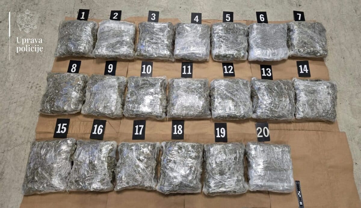 Crnogoska policija juče je na Graničnom prelazu „Dobrakovo“ obavila ciljanu kontrolu osobe i vozila, zaplijenila 21 kilogram marihuane i uhapsila osumnjičenog Ž.R. (29) iz Zete.